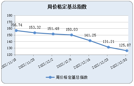 本周(12月24日-12月30日)金鑼集團生豬周價格定基總指數(shù)為125.87點,環(huán)比下調(diào)5.34點。