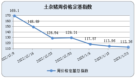 本周(1月14日-1月20日)金鑼集團土雜豬周價格定基指數(shù)為112.36點,環(huán)比下調(diào)1.6點。